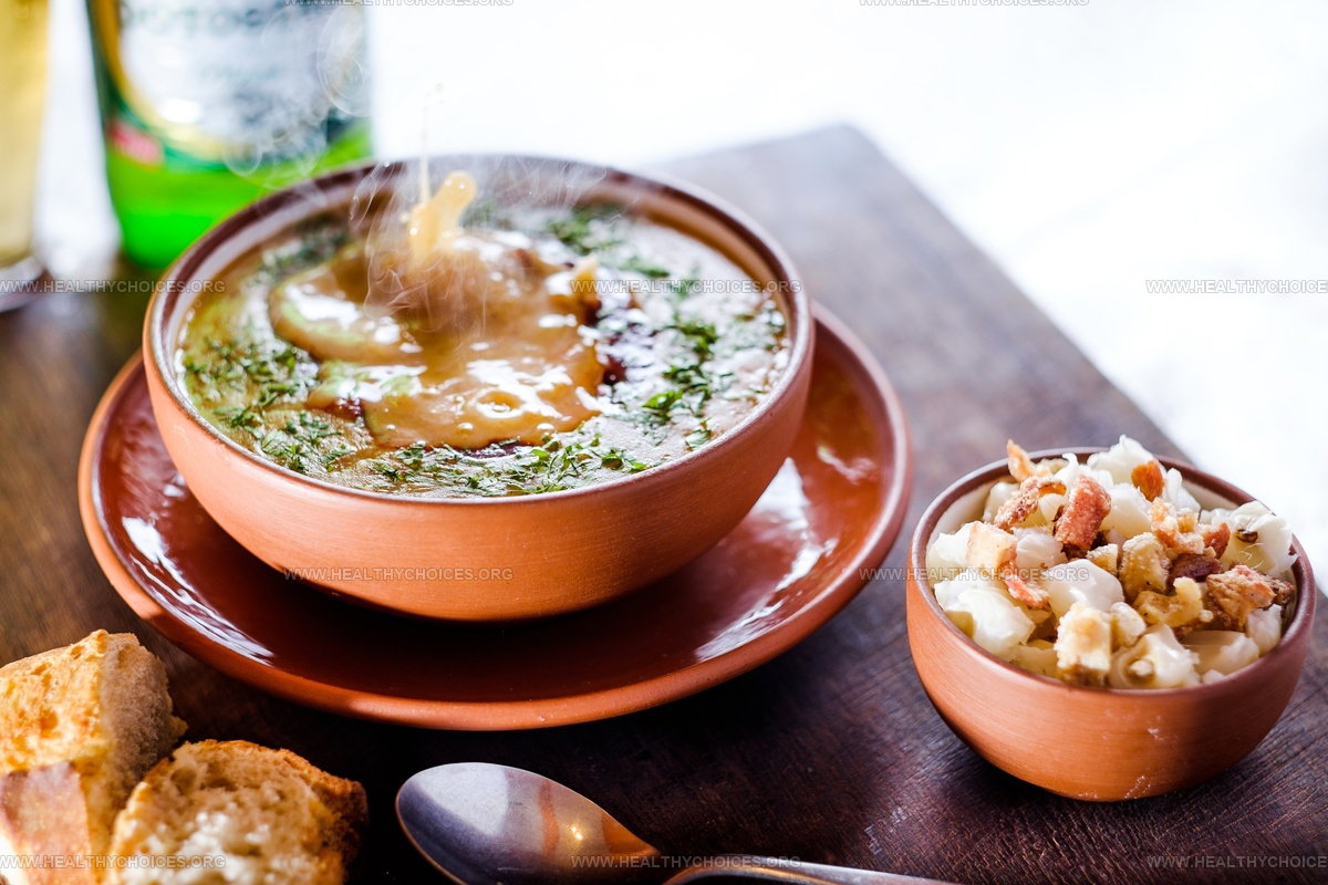 Oregano, cumin, garlic, and salt enhance the soup's robust flavor profile.