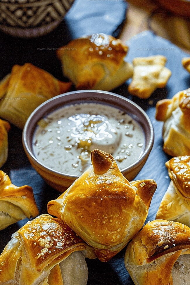 - Expertly fold the pastry corners, creating elegant parcels that completely encase the savory filling, ensuring the edges are firmly sealed to prevent unraveling during baking.