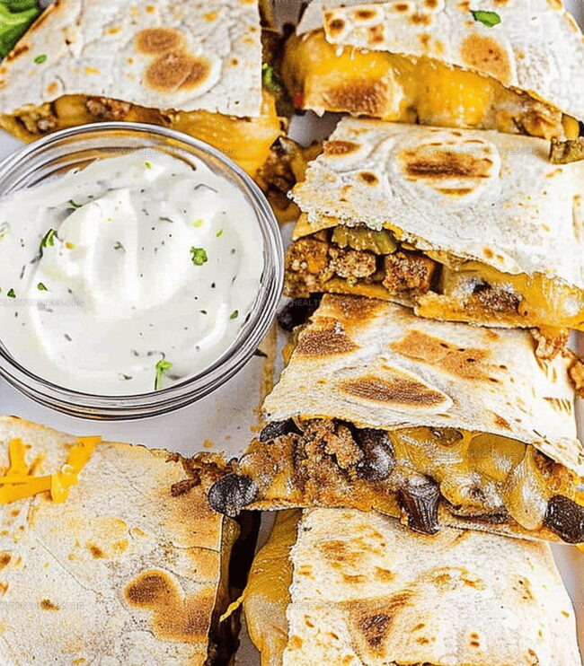 Let the quesadilla cool slightly, then slice into wedges and serve with a dollop of cool sour cream for a perfect flavor balance.
