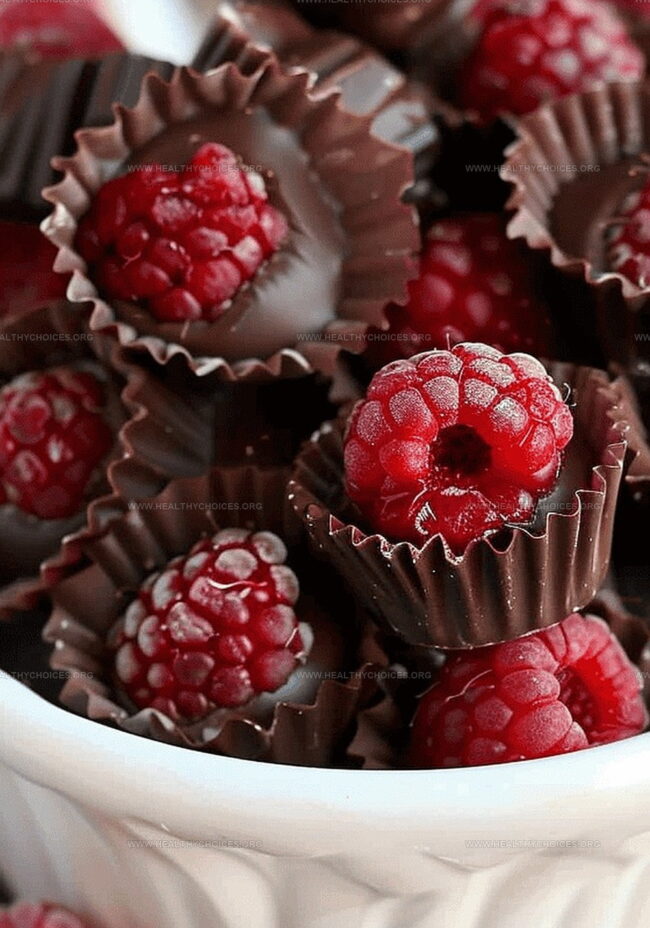 - Complete each bite by drizzling an additional chocolate layer, completely enveloping the raspberries and creating a smooth, seamless exterior.