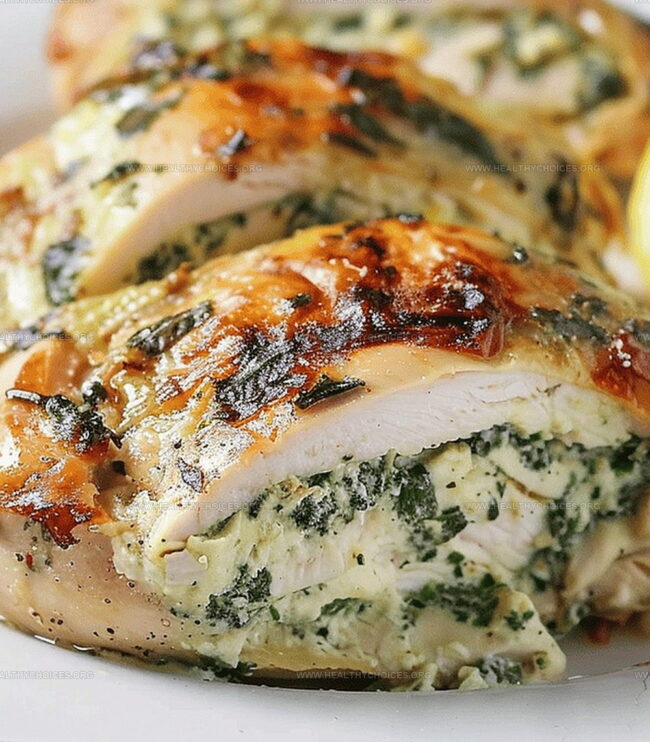 - Stuffing and Seasoning: Generously fill each chicken pocket with the spinach-cheese mixture, then drizzle with avocado or olive oil, seasoning liberally with sea salt, cracked black pepper, dried parsley, and bright lemon zest.