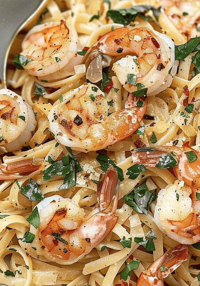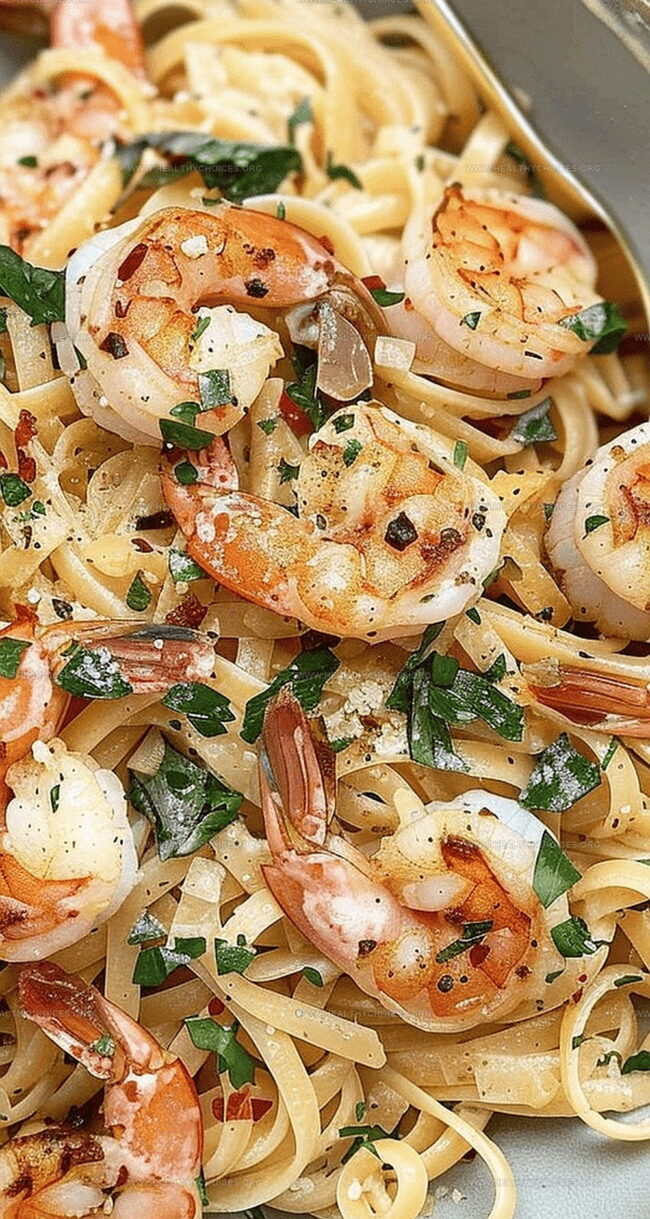 Succulent shrimp nestle among silky strands of linguine, promising an elegant yet approachable meal that feels simultaneously sophisticated and comforting.