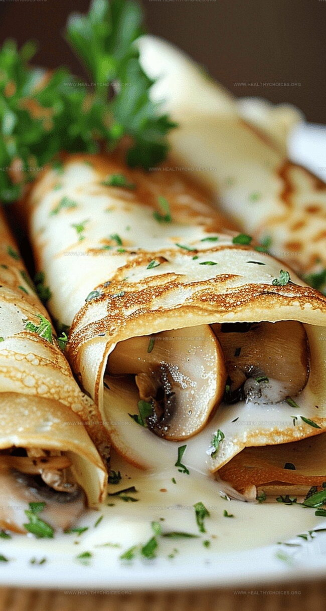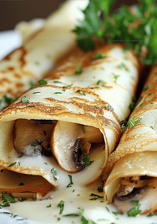 Crepe Batter Ingredients:Herb and Seasoning Blend:Filling and Topping Ingredients:Steps to Prepare Crepes with Turkey, Mushroom, and Swiss Cheese