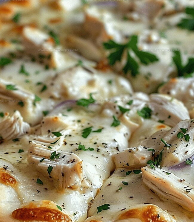 Homemade roasted garlic white chicken pizza delivers creamy comfort with herb-infused elegance. Crisp crust, tender chicken, and melted cheeses create a Mediterranean-inspired meal you’ll savor with pure culinary delight.