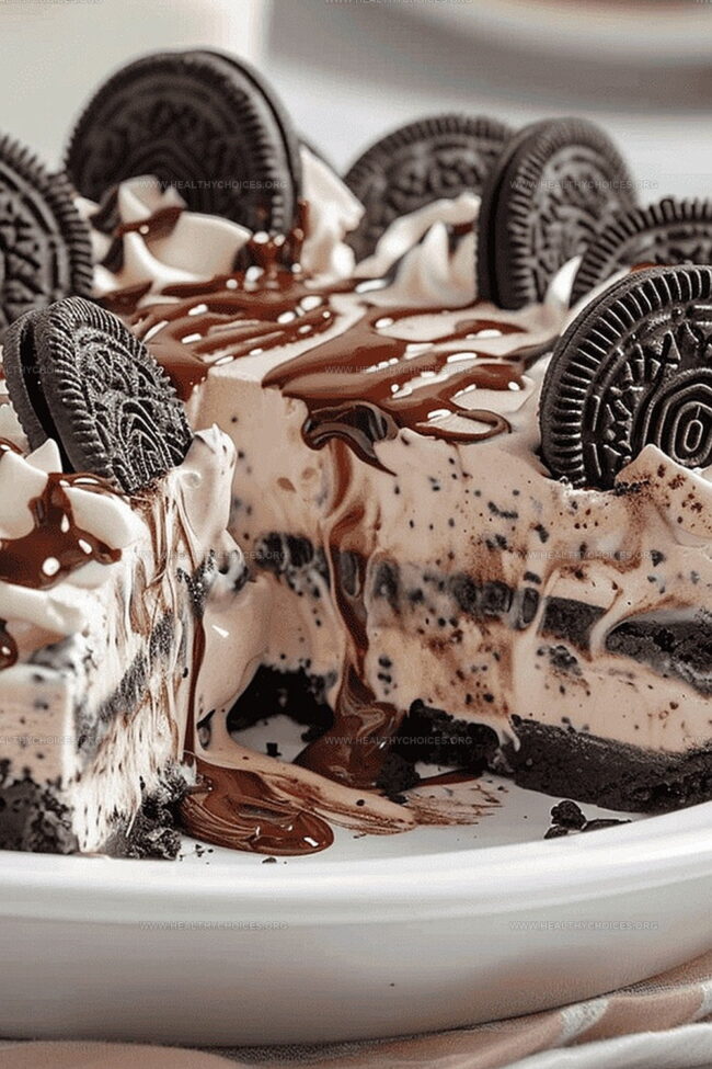 Whipped Cream Swirl Finale: Top individual slices with delicate swirls of whipped cream and a light dusting of cookie crumbs, transforming each serving into a restaurant-worthy dessert that looks professionally prepared.