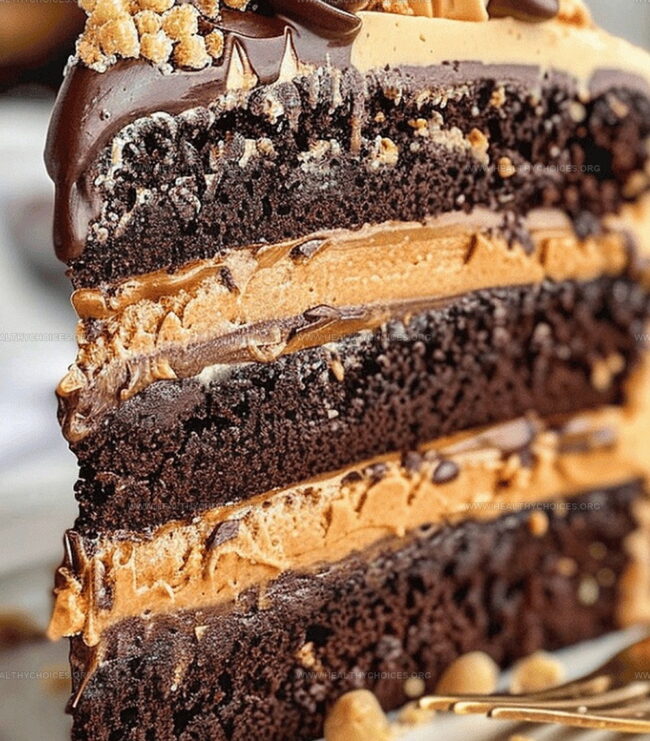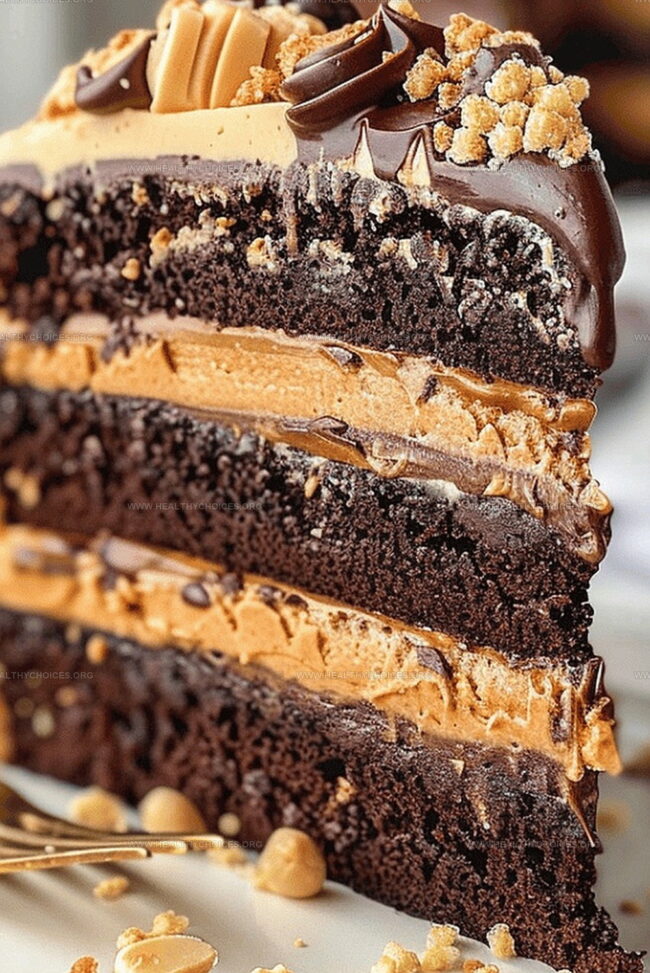 This rich chocolate peanut butter layer cake combines intense cocoa depths with creamy peanut butter frosting. Chocolate and peanut butter lovers will savor each decadent bite of this irresistible dessert that promises pure indulgence.