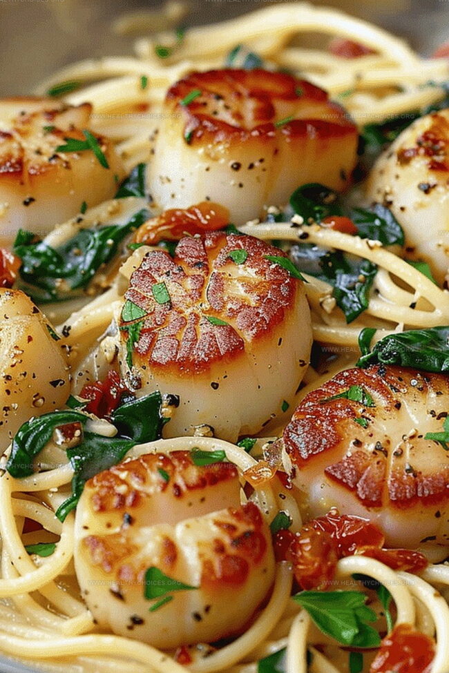 - Plating and Finish: Nestle seared scallops over the pasta, warm briefly in sauce, and garnish with freshly chopped parsley. Serve immediately while piping hot.
