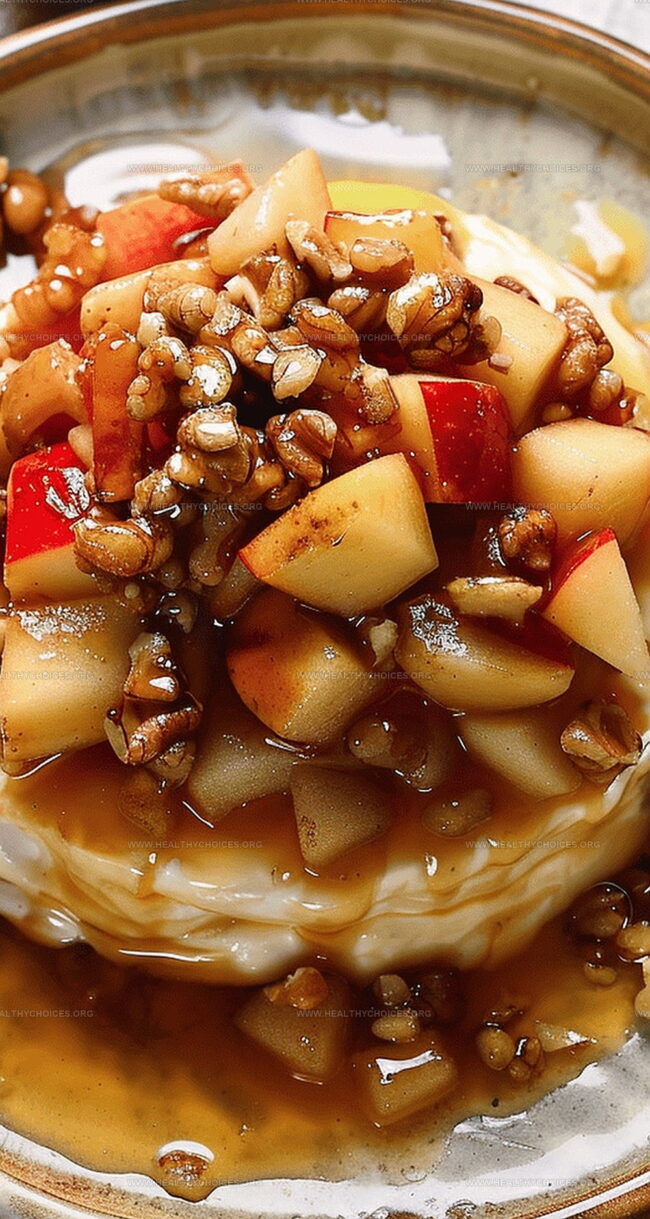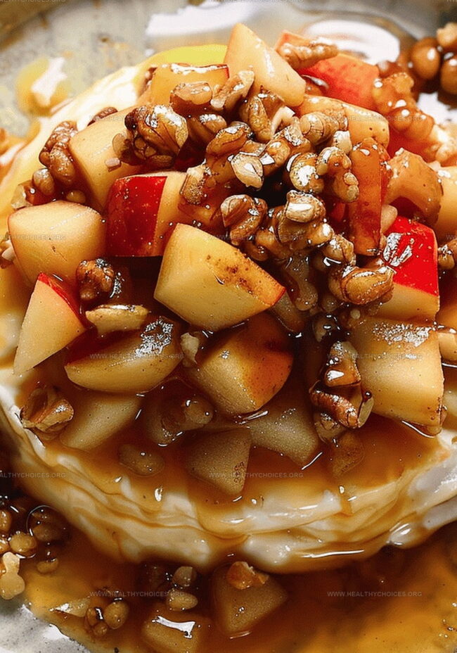 Crowning Glory Generously scattering the caramelized apple mixture and crunchy walnuts over the warm cheese creates a stunning culinary artwork. Each bite promises a symphony of textures and flavors.