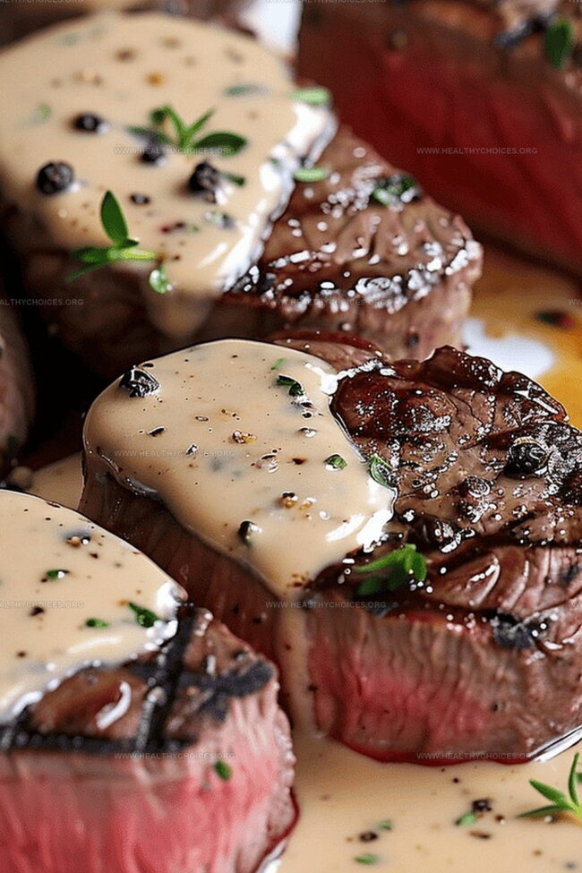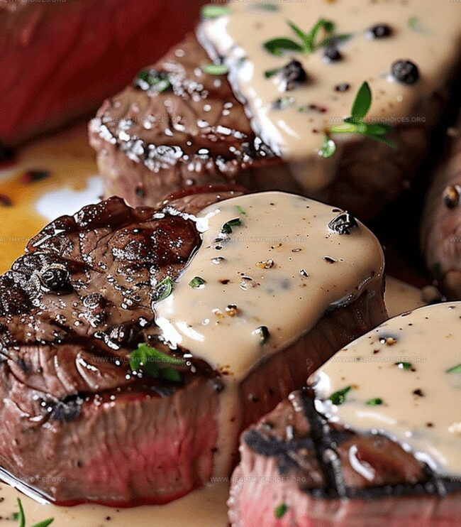 - Final Touches: Adjust seasoning, plate rested steaks, and generously drizzle shallot peppercorn sauce over the top.