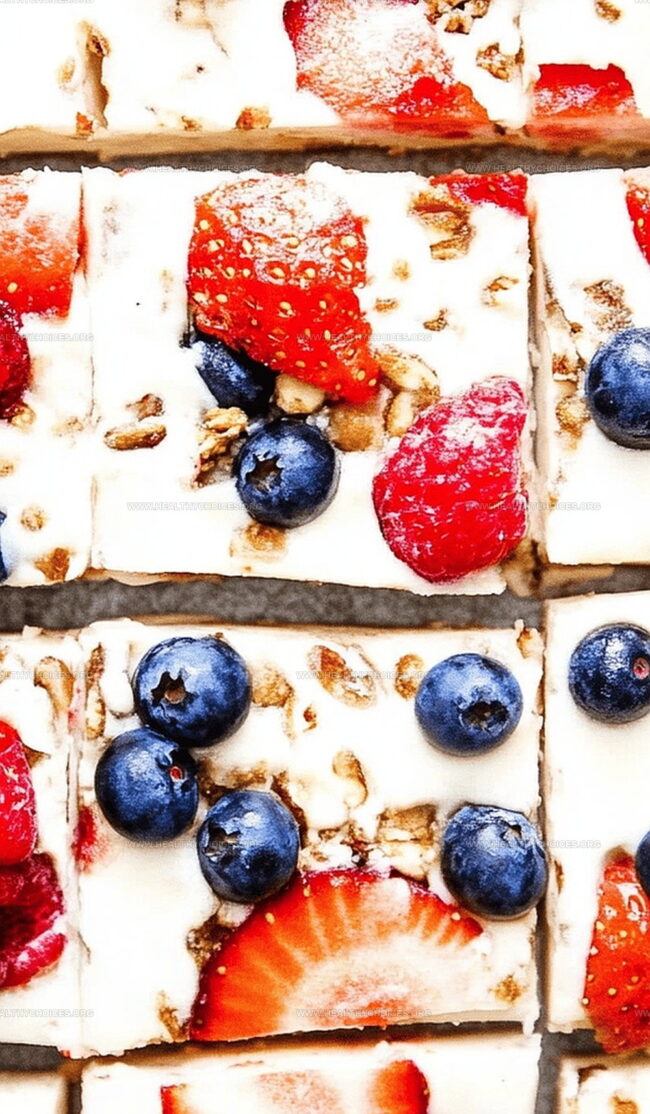 - Artfully arrange sliced strawberries, whole blueberries, and vibrant raspberries atop the yogurt foundation, creating a colorful and enticing pattern.