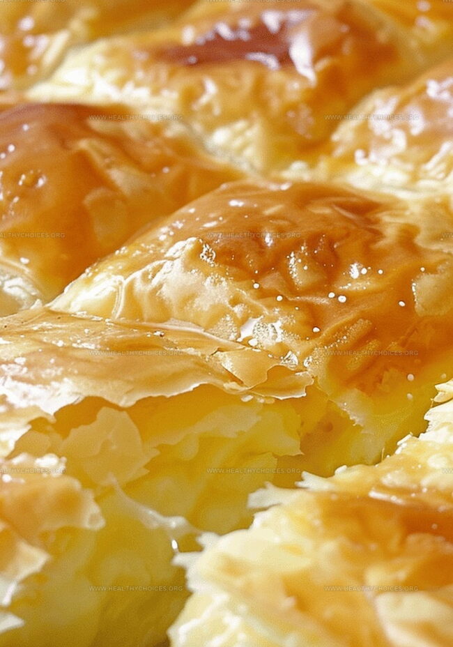 - Allow galaktoboureko to rest for minimum one hour, enabling complete syrup absorption before serving.