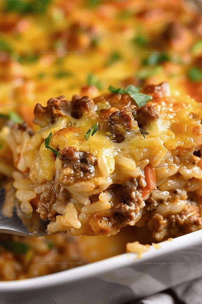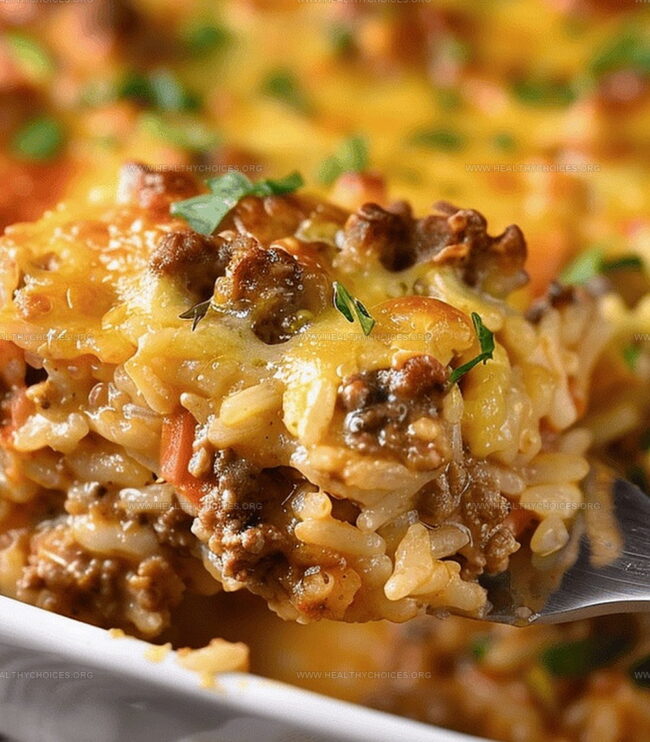 Mexican-inspired cheesy beef and rice bake delivers comforting layers of hearty flavors in one satisfying casserole. Melted cheese, seasoned ground beef, and fluffy rice combine for a simple weeknight dinner that families will crave.