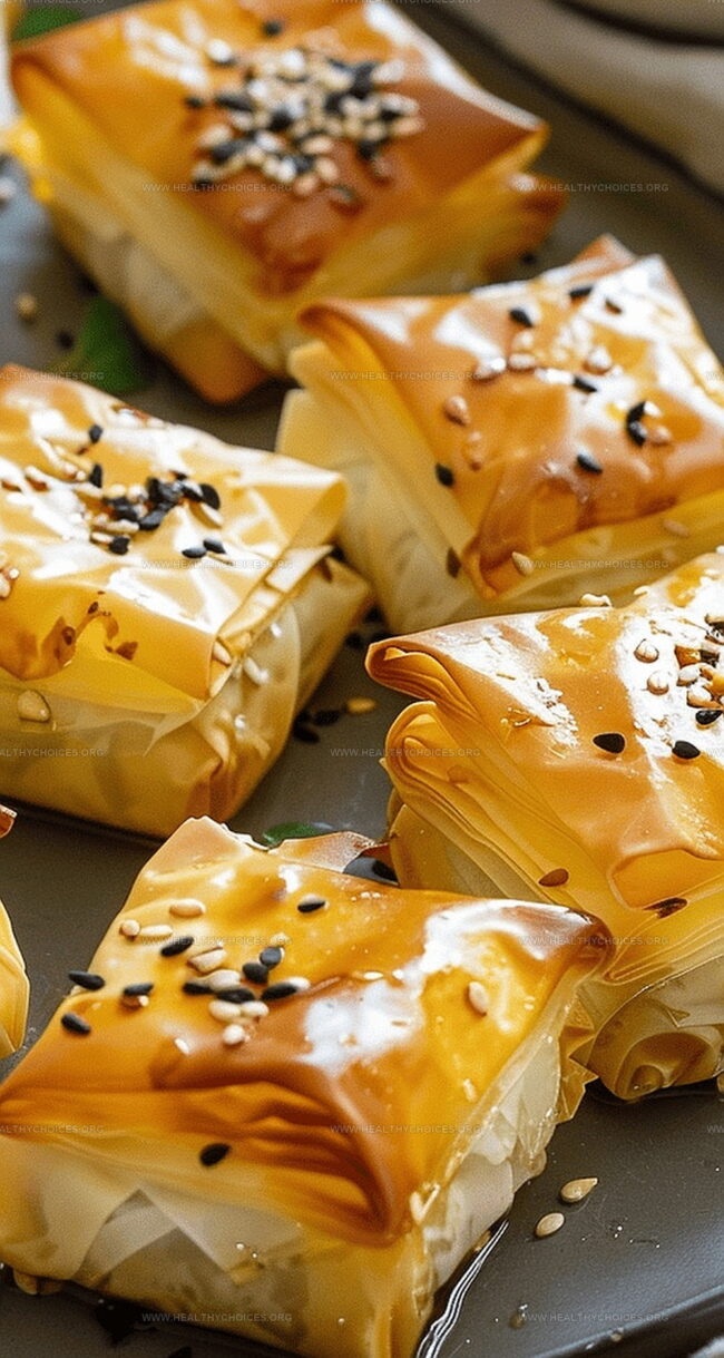 - Final Touches: Bake in the preheated oven for 10-15 minutes until the phyllo reaches a rich, amber crispness. Remove from the oven and immediately drizzle with honey, then sprinkle with toasted sesame seeds.