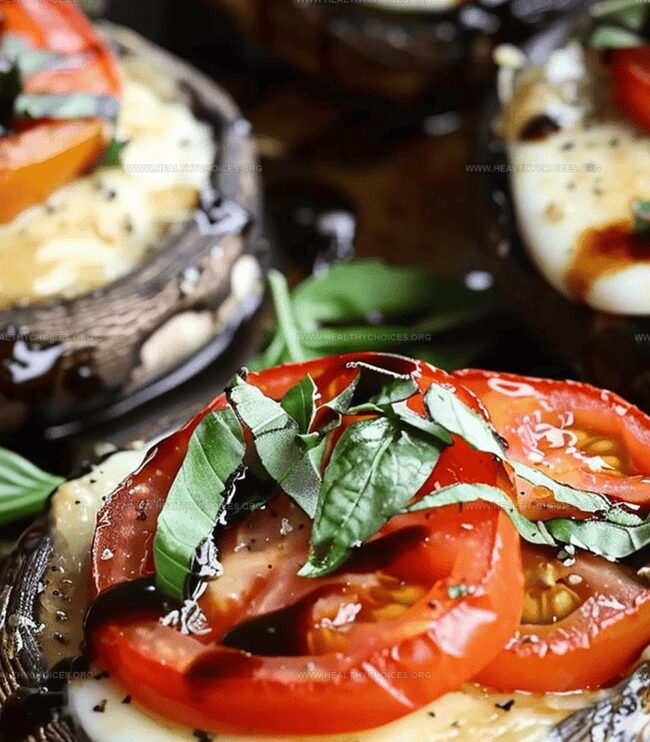 - Final Touches: Remove mushrooms from the oven, allowing a brief resting period to stabilize their structure, then garnish with freshly torn basil leaves, drizzle with balsamic reduction, and sprinkle sea salt to intensify the flavor profile.