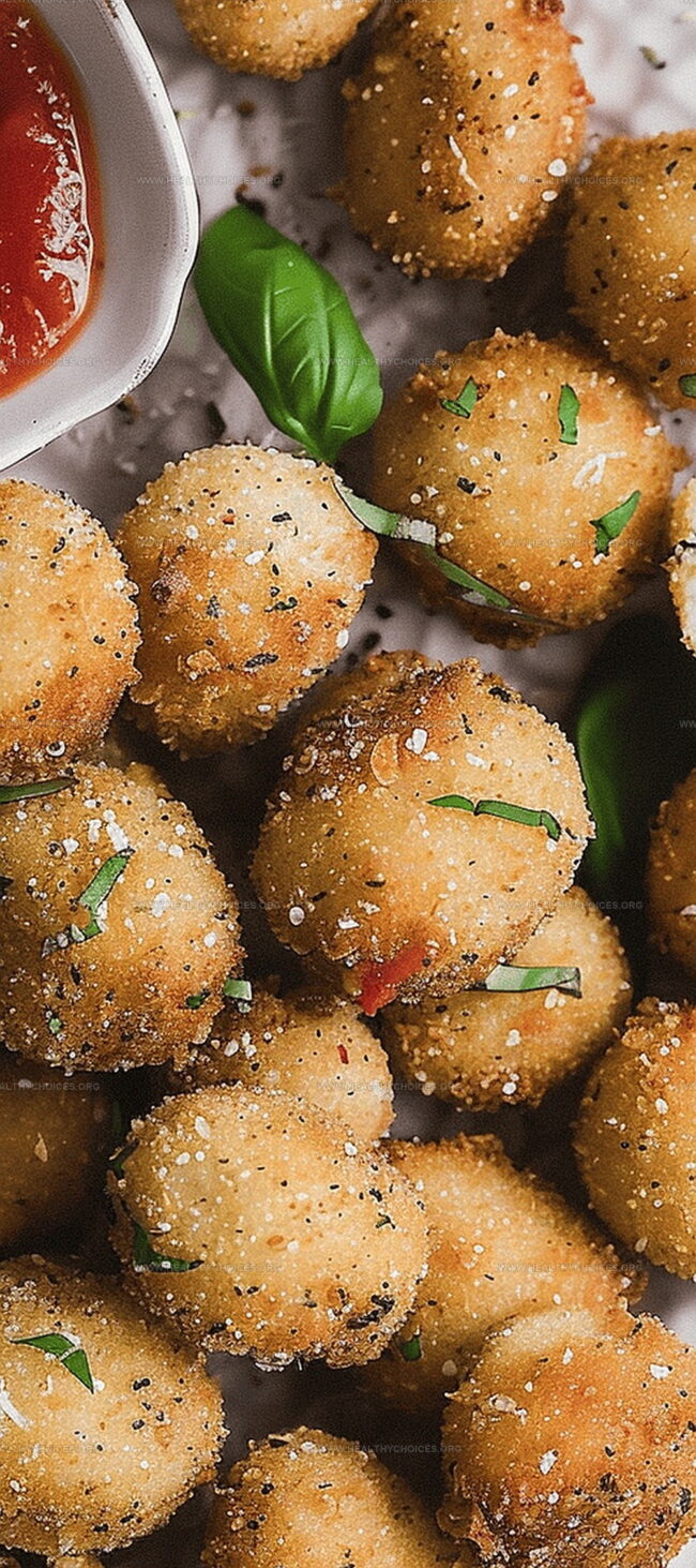 Golden, crispy, and irresistibly cheesy mozzarella balls dance with delectable flavor in this mouthwatering recipe.