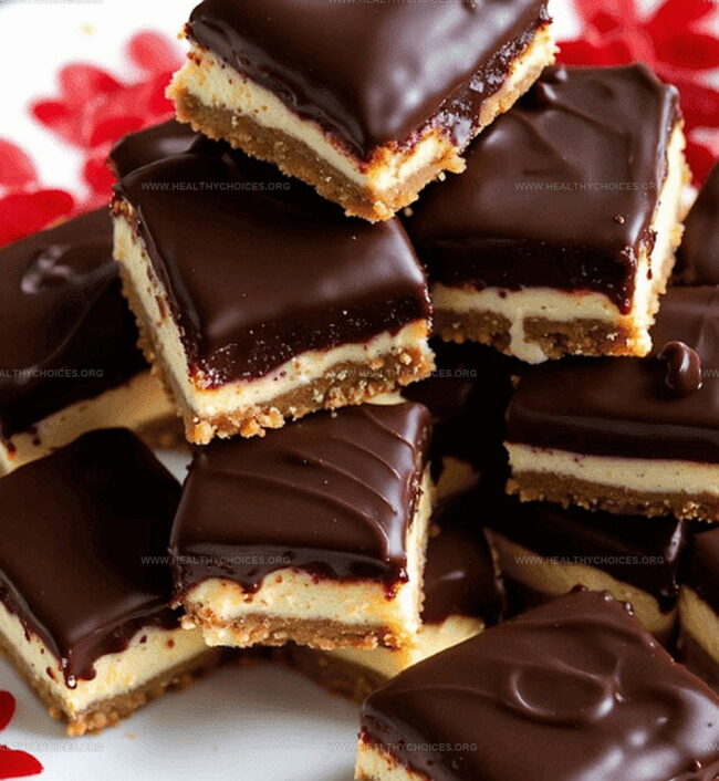 - Finishing Touch: Slice the chilled cheesecake into 64 bite-sized squares, carefully dip each piece into the cooled chocolate ganache for complete coverage, and arrange on a parchment-lined tray to set in the freezer until the chocolate shell becomes crisp.