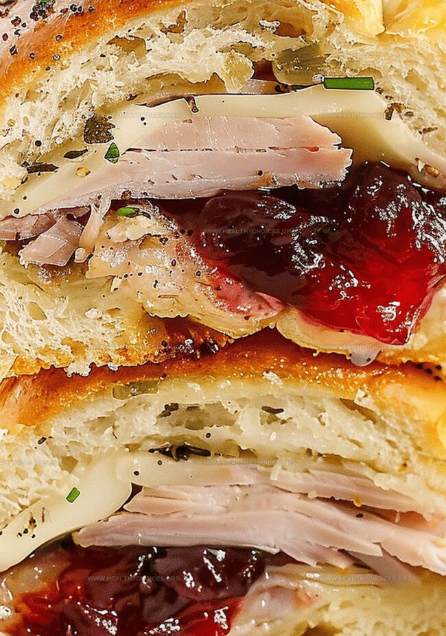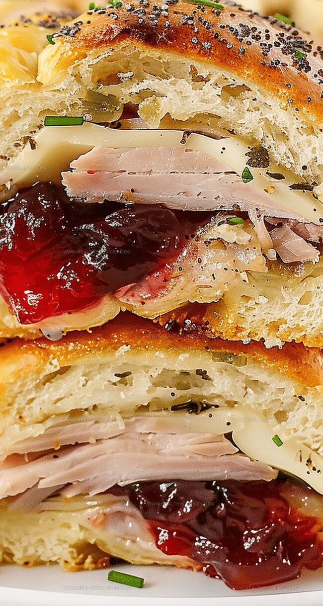 Layer Construction: Meticulously distribute deli turkey across roll base, then cascade cranberry sauce over the meat, followed by an even arrangement of Havarti or provolone cheese slices, creating a harmonious flavor profile.