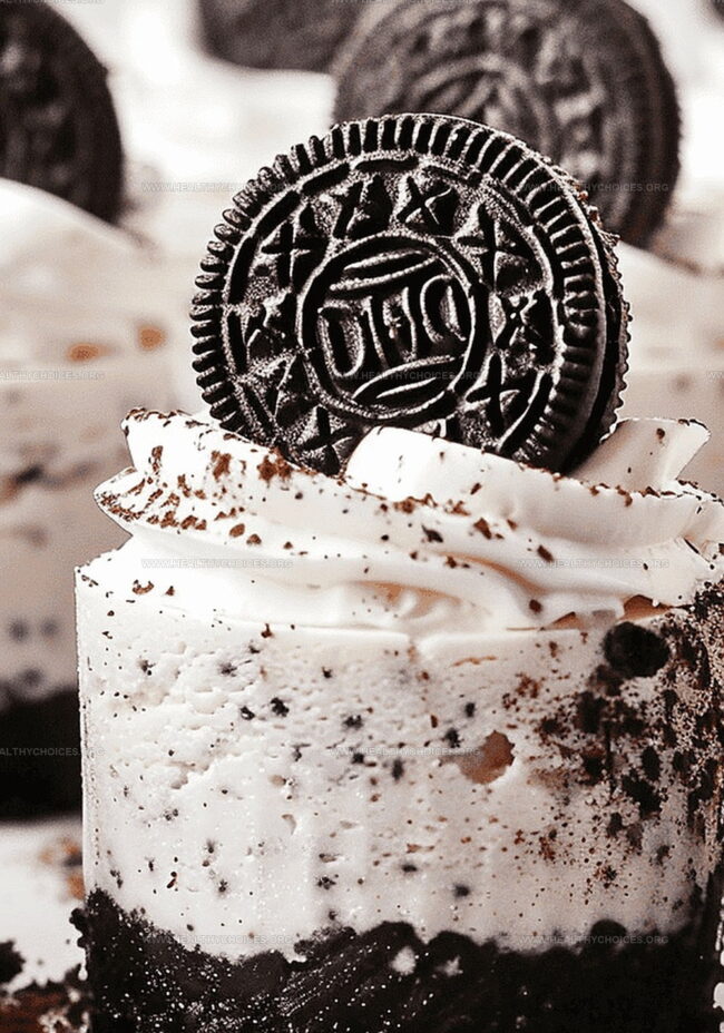 - Garnish with a half Oreo cookie and sprinkle of cookie crumbs for visual appeal.