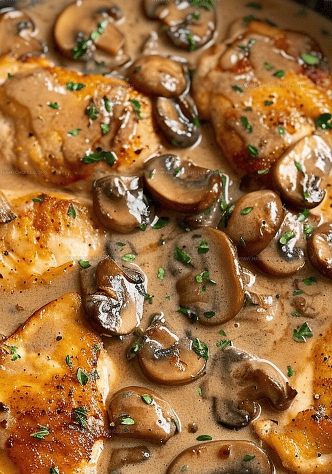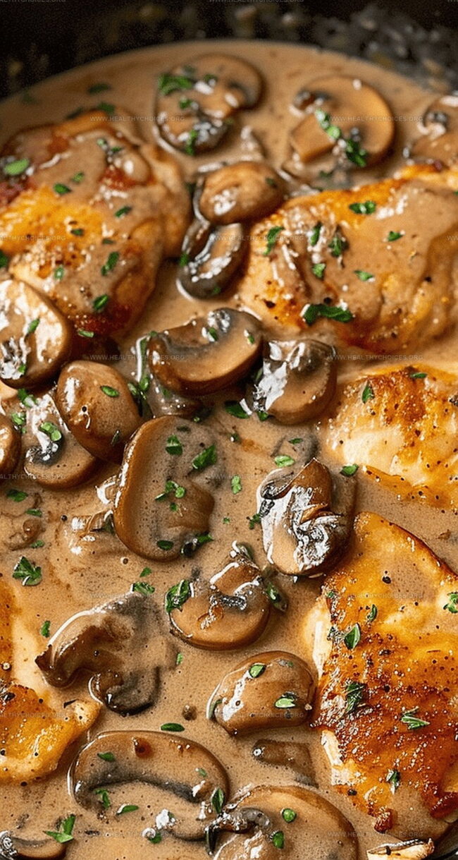 - Reintroduce sautéed mushrooms to the sauce, then gently nestle the seared chicken back into the skillet.