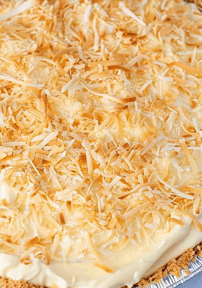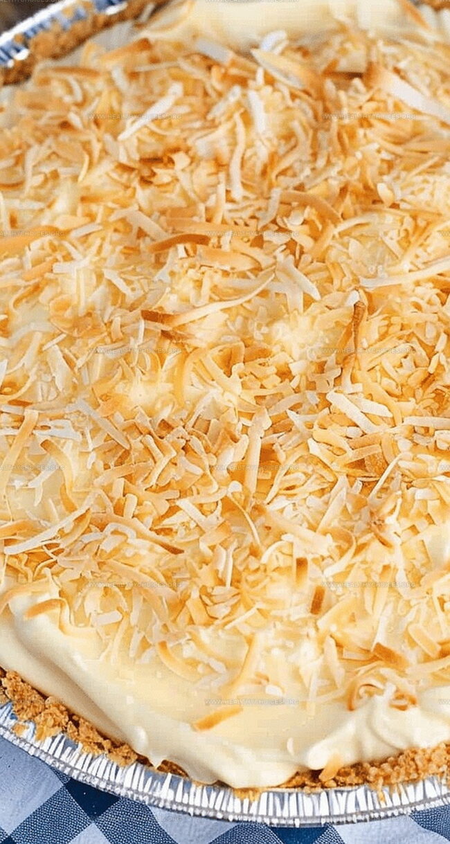 - Optionally, sprinkle additional toasted coconut across the top of the pie for an extra layer of texture and visual appeal.