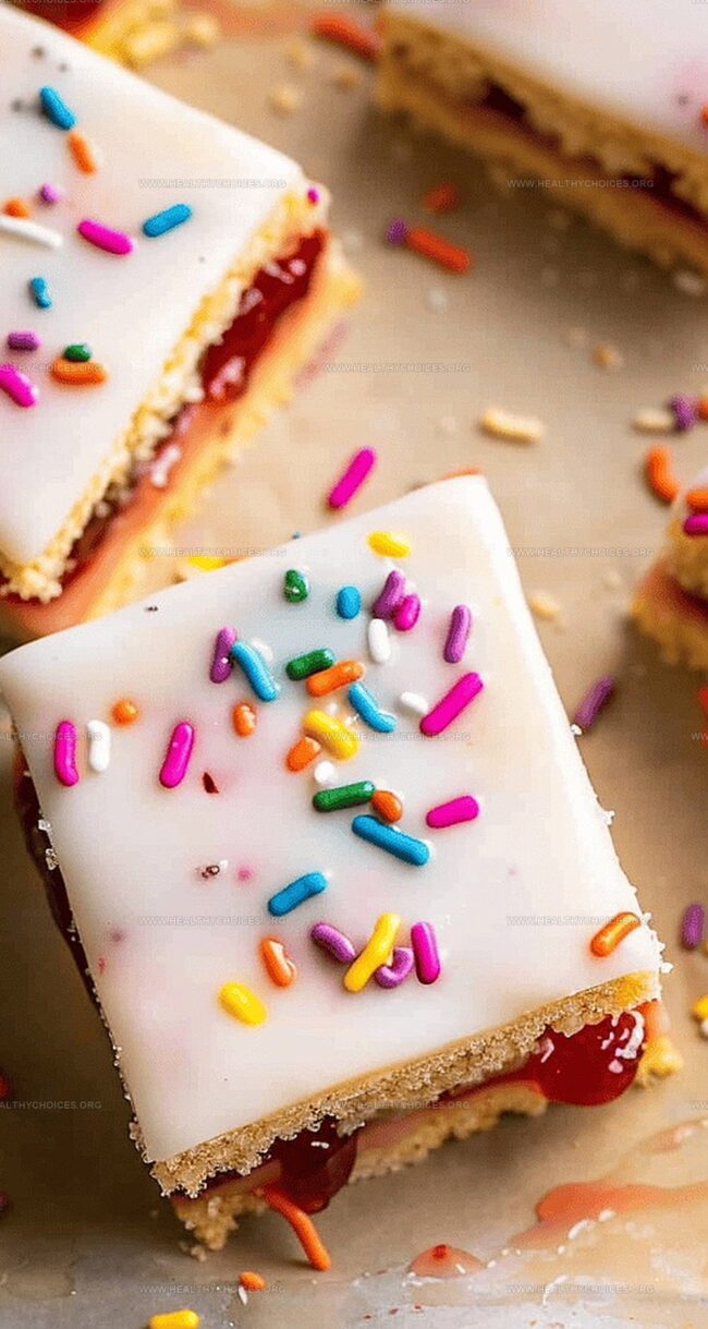 Nostalgic pop tart cookie bars merge childhood breakfast memories with irresistible dessert charm. Layers of buttery pastry, sweet fruit filling, and crumbly streusel create a delightful treat you cannot resist sharing with friends and family.