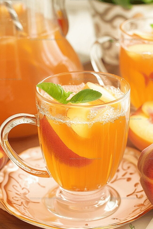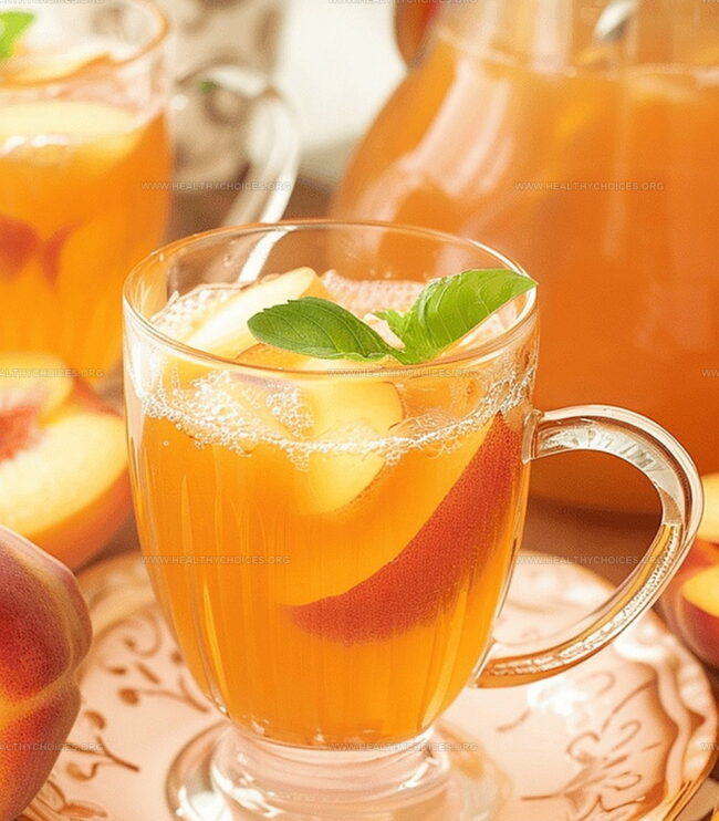 - Chilling and Serving: Refrigerate the mixture to develop flavors. When ready, fill glasses with ice, pour the chilled peach tea, and garnish with previously frozen peach wedges for an elegant presentation.