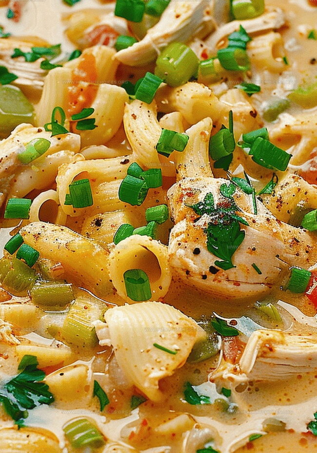 Sizzling Parmesan Cajun Chicken Pasta Soup