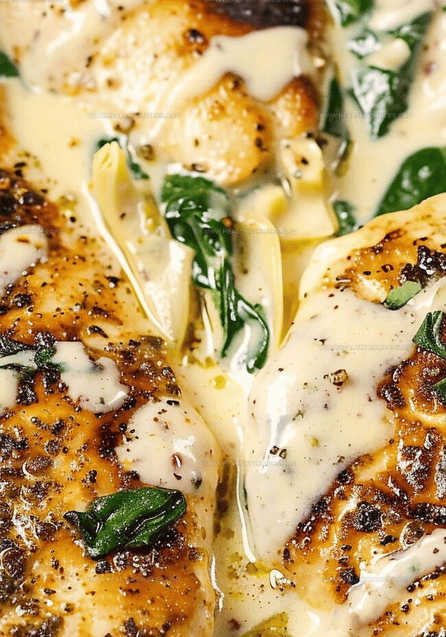 - Nestle the reserved chicken breasts back into the skillet, lovingly coating them with the vibrant spinach and artichoke infusion.