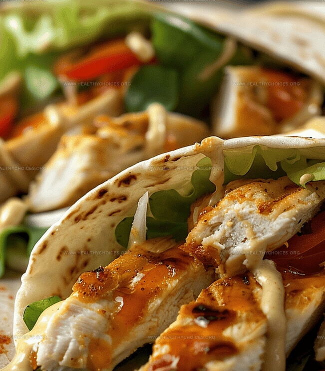 Mexican-style chicken wraps deliver a zesty flavor explosion that combines tender grilled chicken with fresh vegetables and creamy sauce. Crisp tortillas hug savory ingredients, promising a satisfying meal you’ll crave again and again.
