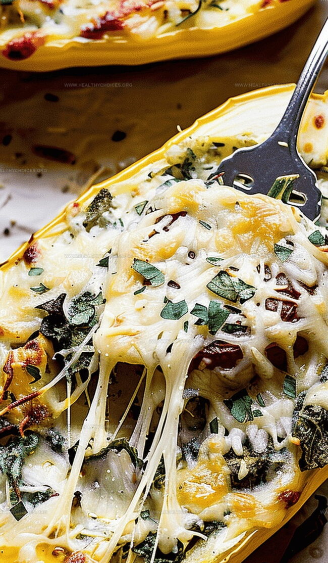 Once cooled, use a fork to lovingly separate the squash into delicate strands. Craft a delightful filling by combining creamy cheeses, vibrant artichokes, and fresh spinach. Infuse the mixture with aromatic herbs and a touch of garlic for extra excitement.