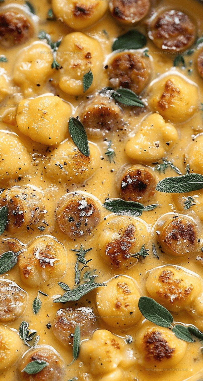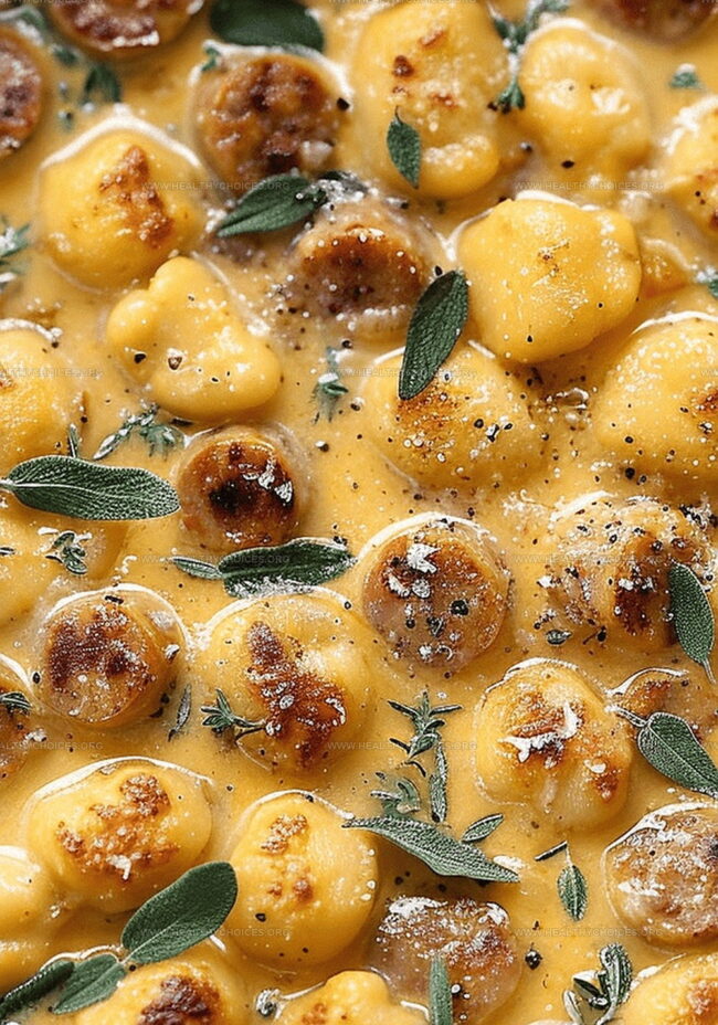Soft, pillowy gnocchi dance with spicy sausage in a rich, aromatic sauce that whispers autumn’s delicate notes.