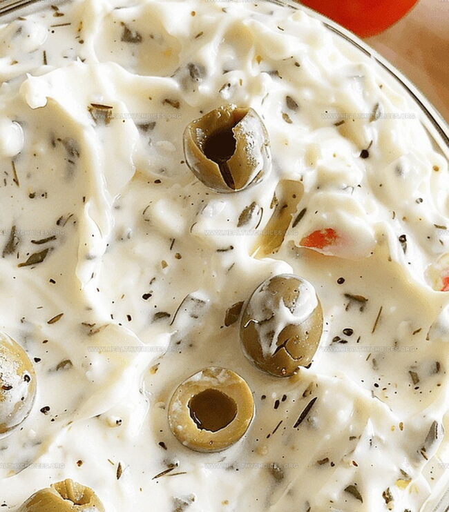 Homemade creamy olive spread delivers Mediterranean charm with rich, tangy flavors. Quick preparation and simple ingredients make this delightful appetizer perfect for sharing with friends and family.