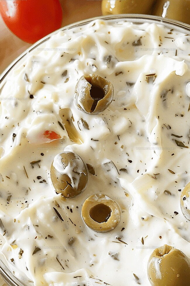 - Whisk Carefully: Blend cream cheese, mayonnaise, and olive brine smoothly to create a creamy, light base without lumps.
