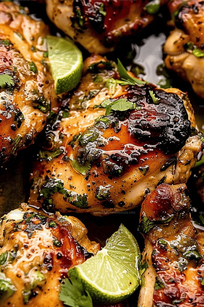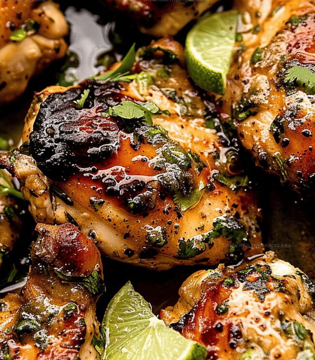 - Final Cooking and Resting: Continue cooking chicken for additional six to eight minutes, ensuring internal temperature reaches 165°F. Remove from heat, let rest briefly, then brush with reserved marinade and garnish with fresh chopped cilantro and lime wedges for a zesty finish.