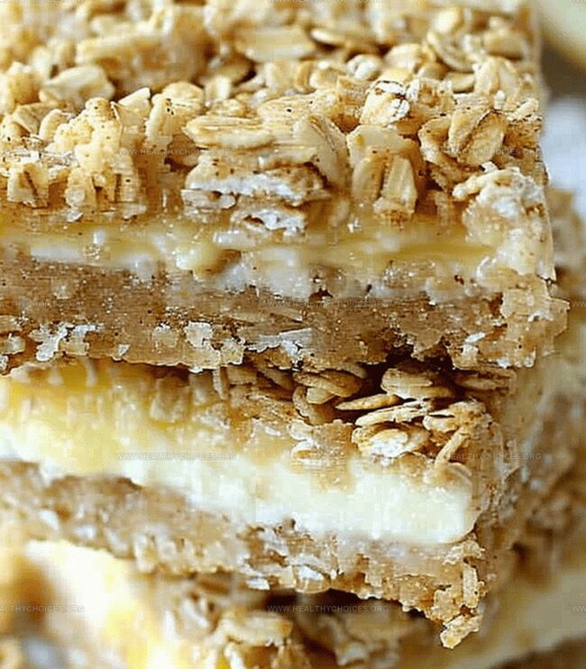 Delightful oatmeal lemon creme bars blend zesty citrus with creamy sweetness, creating a perfect balance of tangy and rich flavors. Crumbly oat layers and silky lemon filling will make you crave another bite of this irresistible dessert.