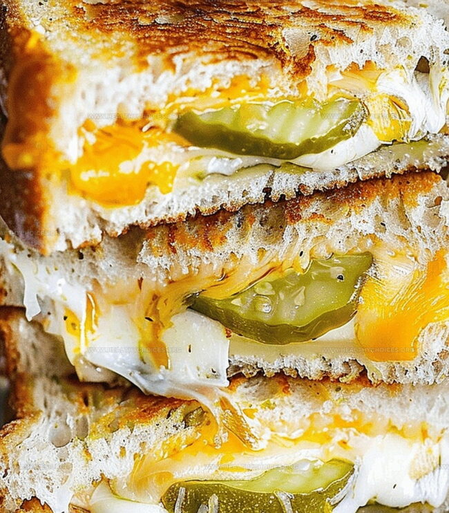 Hearty Deli Pickle Grilled Cheese melds sharp cheddar with tangy dill pickles between golden, crispy bread slices. Midwestern comfort embraces you with each savory, melty bite of this classic sandwich.